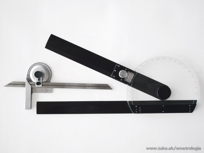 Na obrázkoch je možné vidieť aj uhlomer optický. Konštrukcia uhlomera je obdobná ako u univerzálnych uhlomerov,