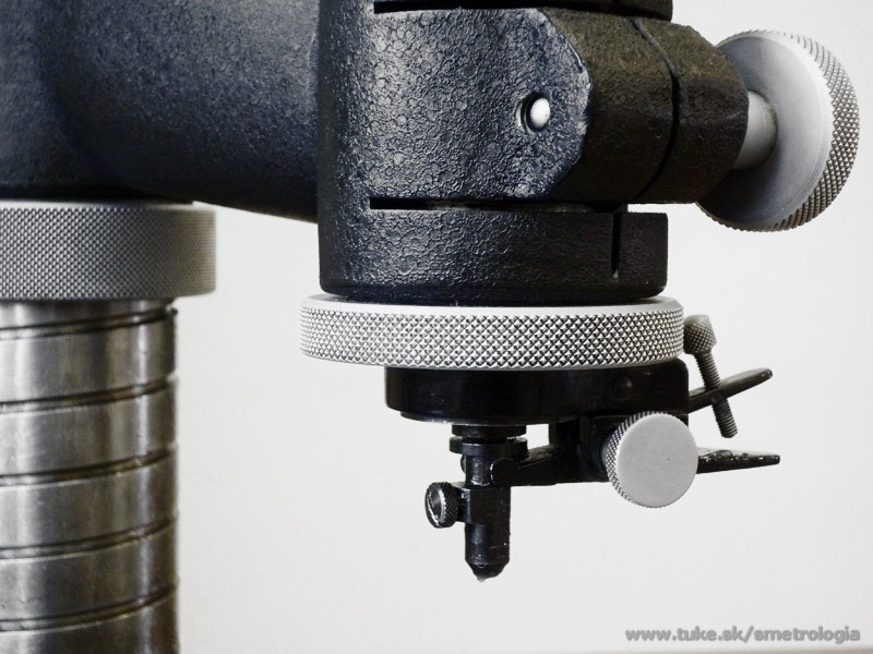 skladá z meracej pinoly pohybujúcej sa na guličkových ložiskách, 100 mm dlhej stupnice osadenej na pinole, odčítacieho špirálového mikroskopu,